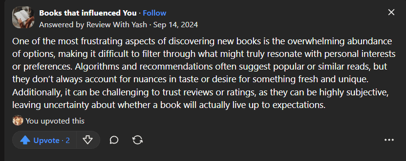 From these user posts, it’s clear that readers face a lot of frustration when it comes to discovering new books. Many struggle with choosing what to read next, especially when waiting for the next book in a series.