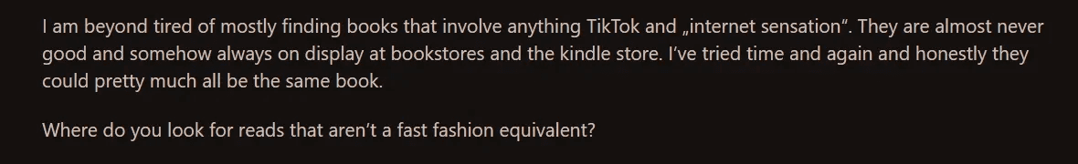 A lot of people are tired of books that go viral on TikTok or feel like they’re just popular because of hype. They want something that genuinely matches their taste.