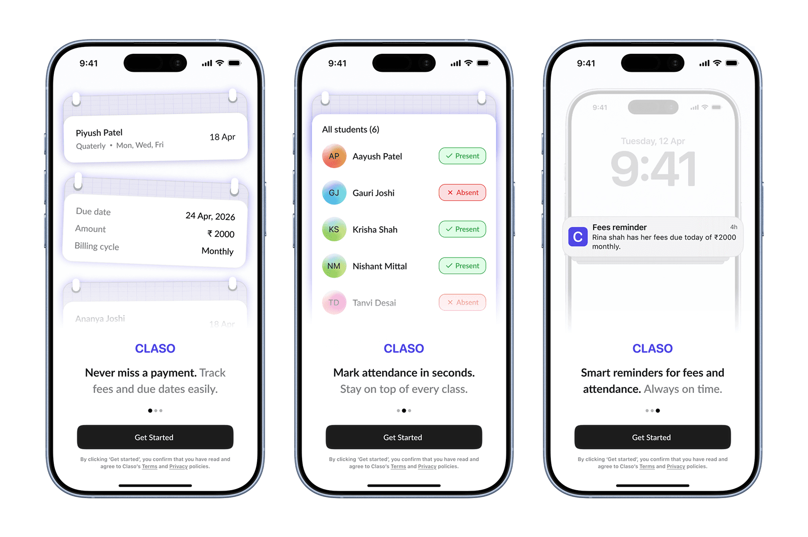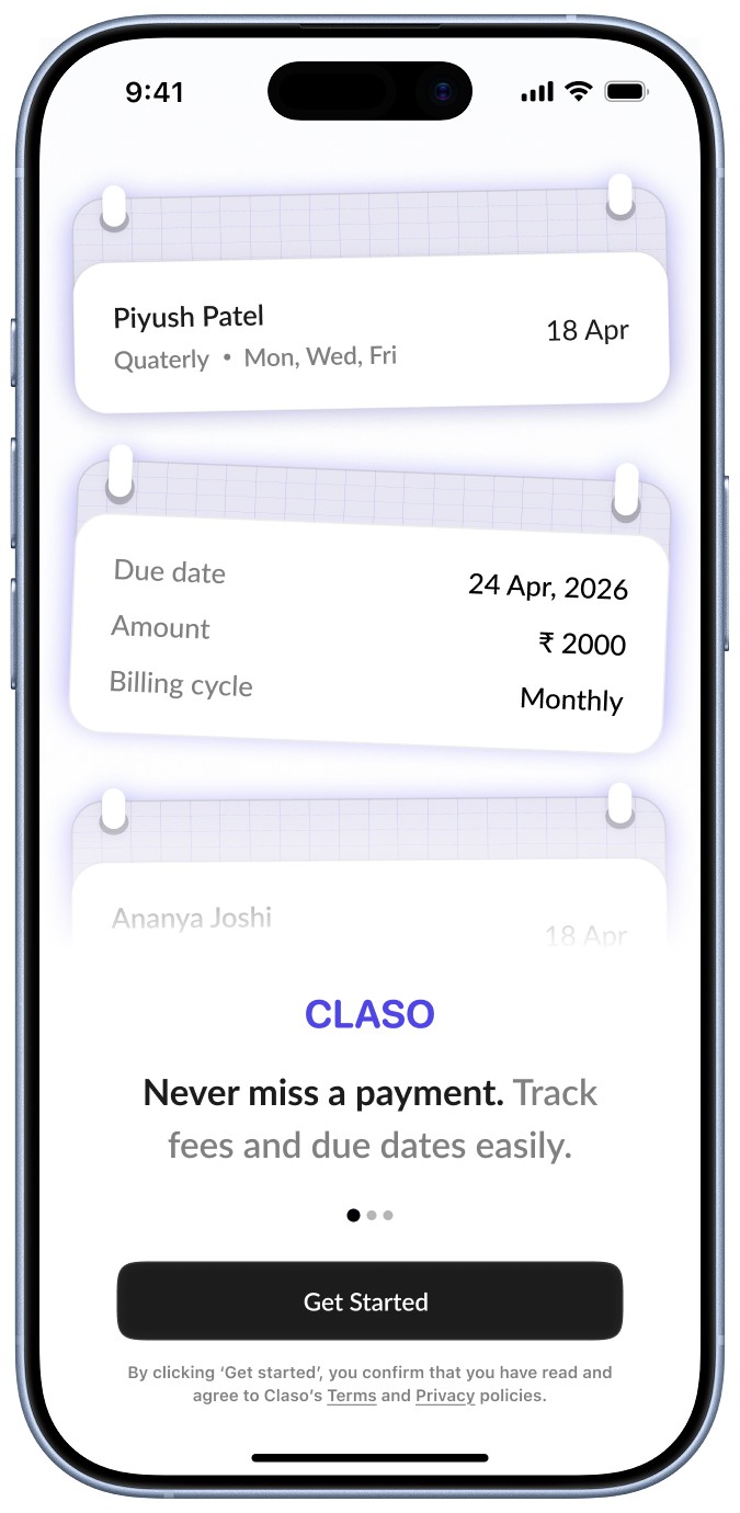 Claso is a class management system that helps educators track fees, attendance, and reminders without relying on memory.