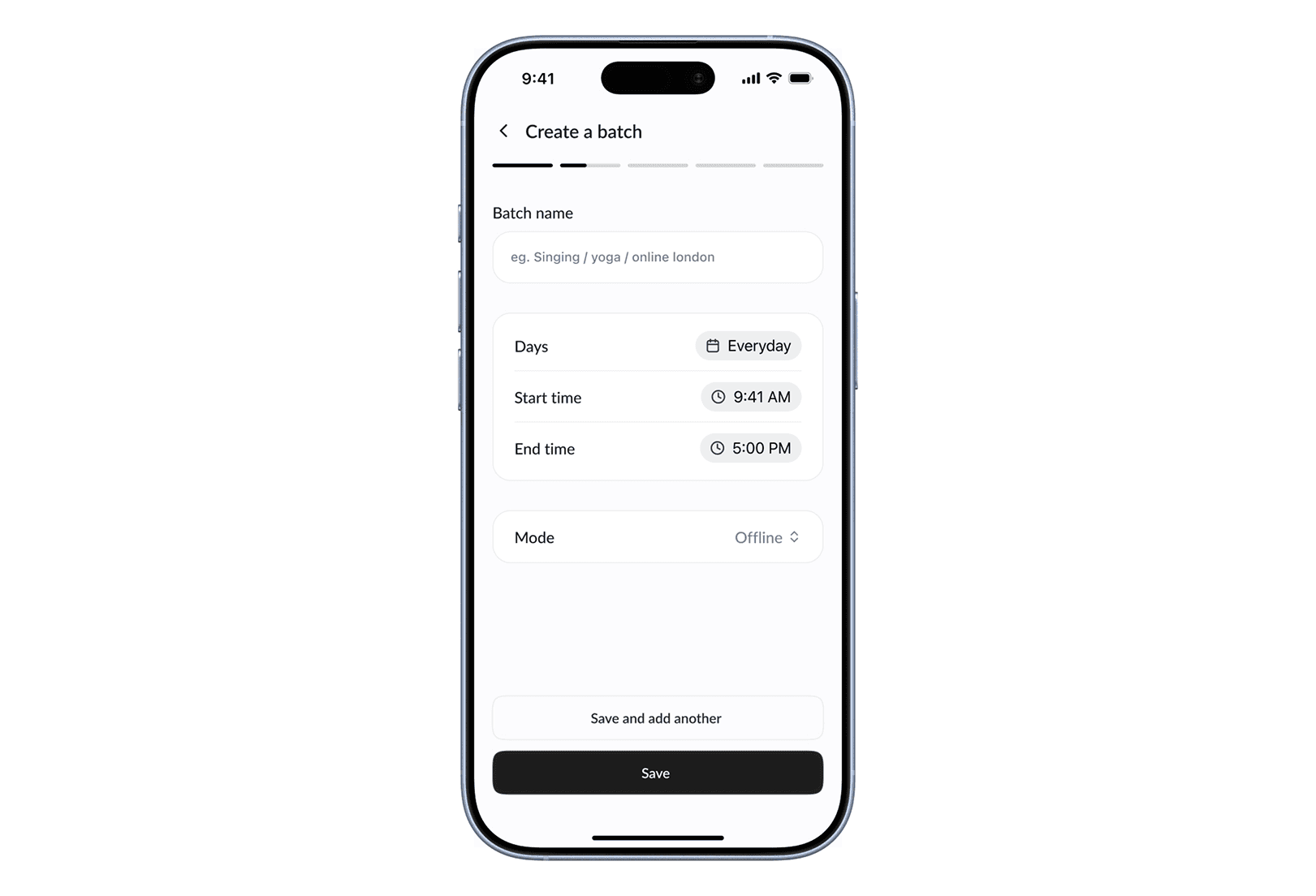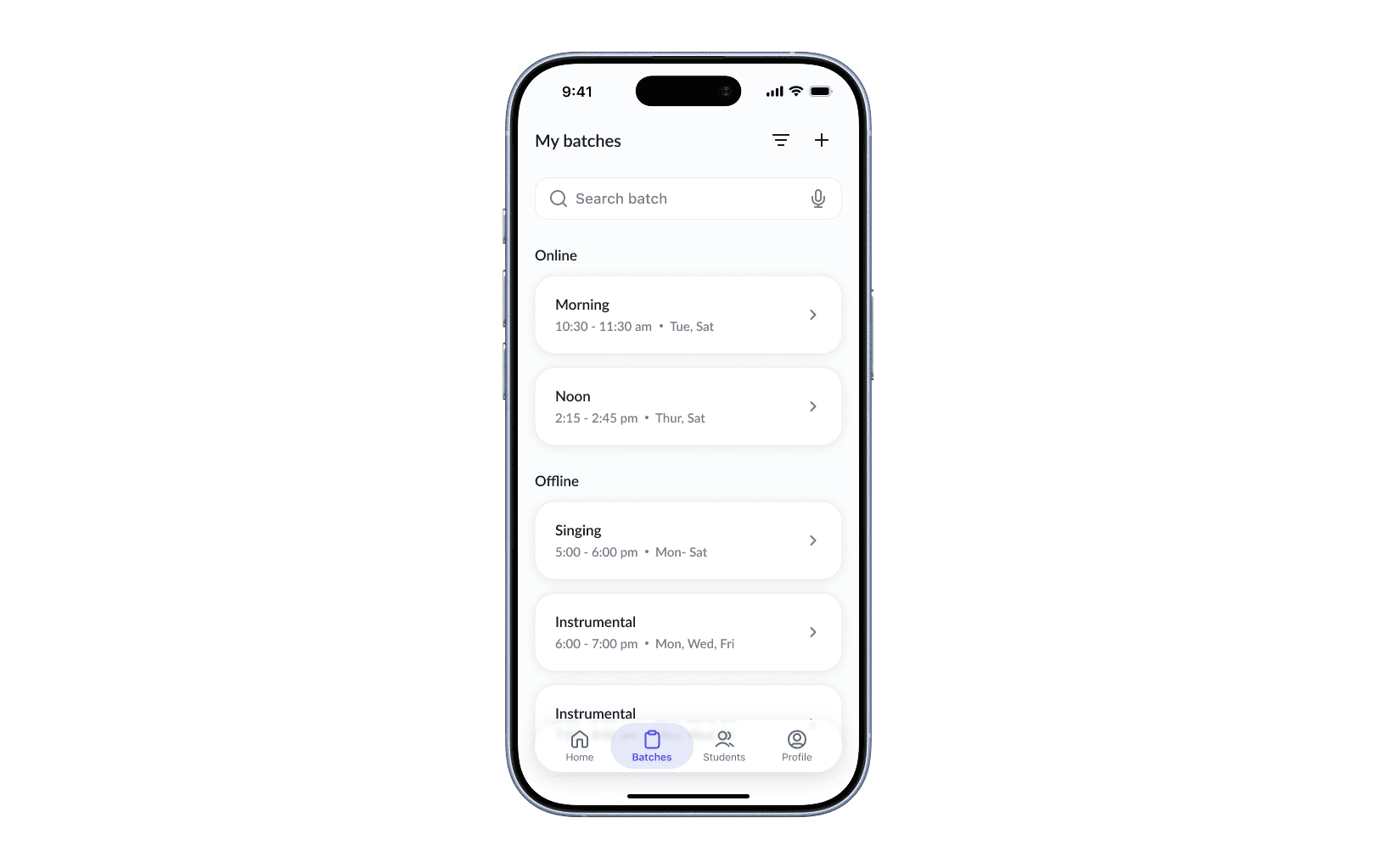 Creating a batch is designed to be quick and familiar, allowing teachers to define their class schedule without unnecessary complexity.