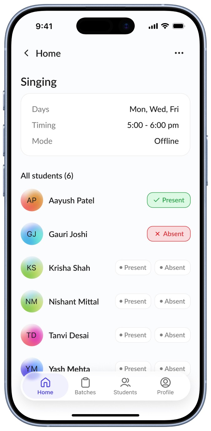 This reduces the interaction to a single decision per student, making the experience feel as quick and lightweight as marking attendance in a physical register.