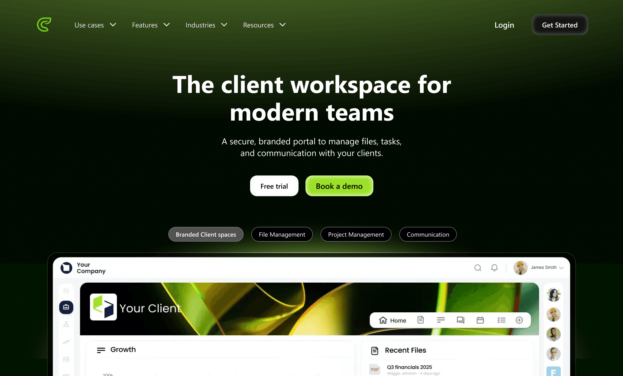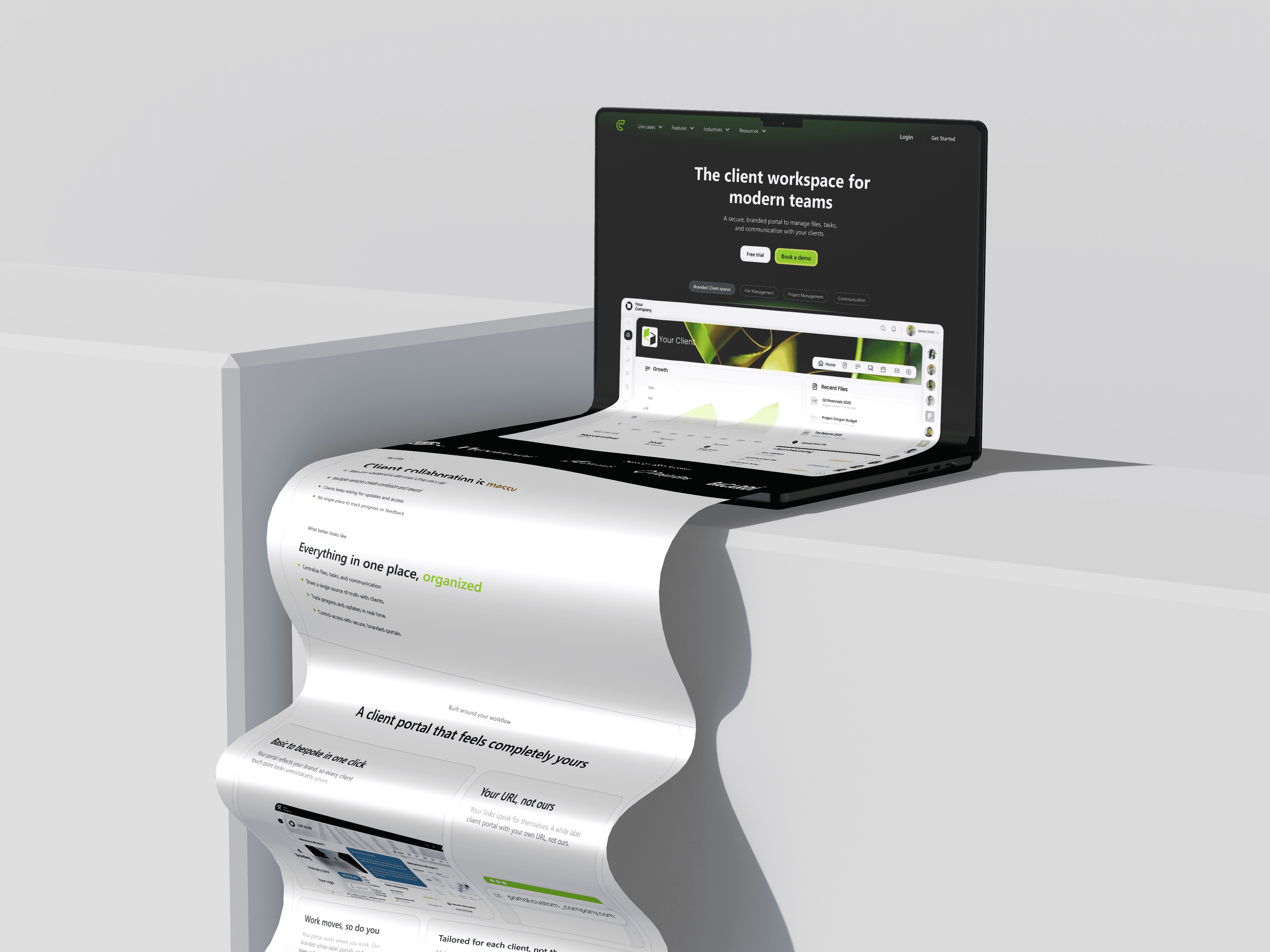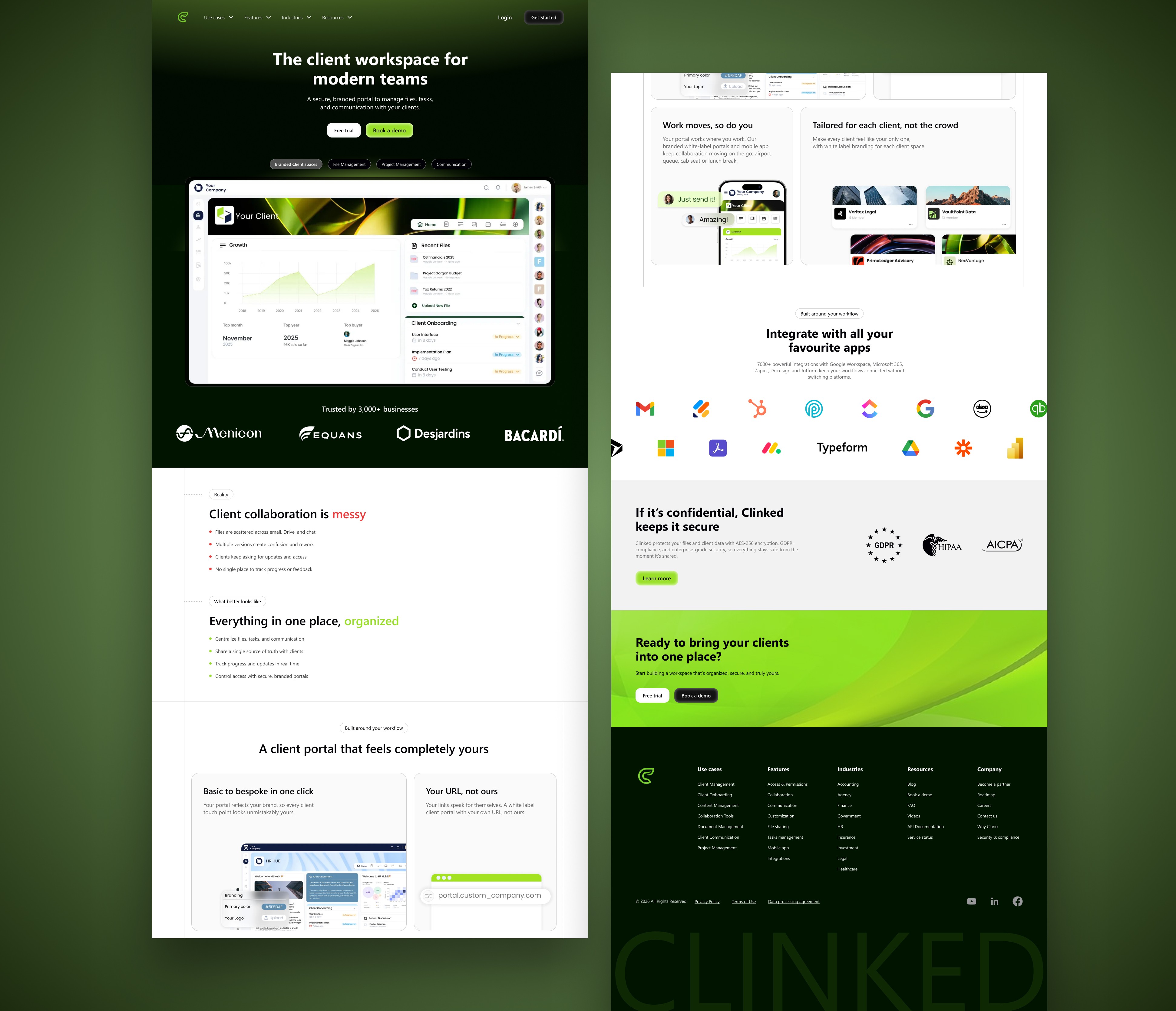To address the confusion around Clinked’s capabilities, I introduced clear category tags like Client Spaces, File Management, Project Management, and Communication at the top.